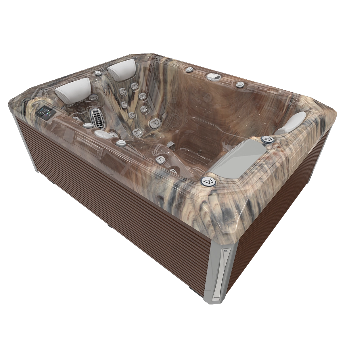 Teide masszázsmedencében vízálló hangszórók, ultrapuha fejpárnák és finoman kidolgozott részletek jellemzik.