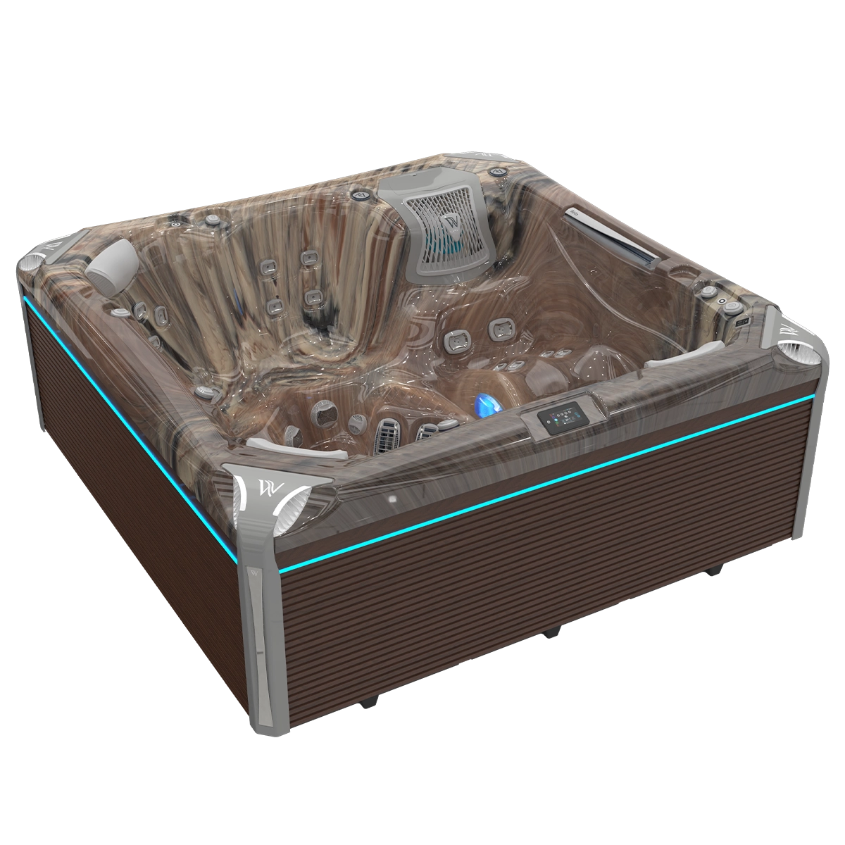A masszázsmedencében található új színterápiás vízesés megújult tervezés alapján készült, és egy valódi vízesés hatását kelti.