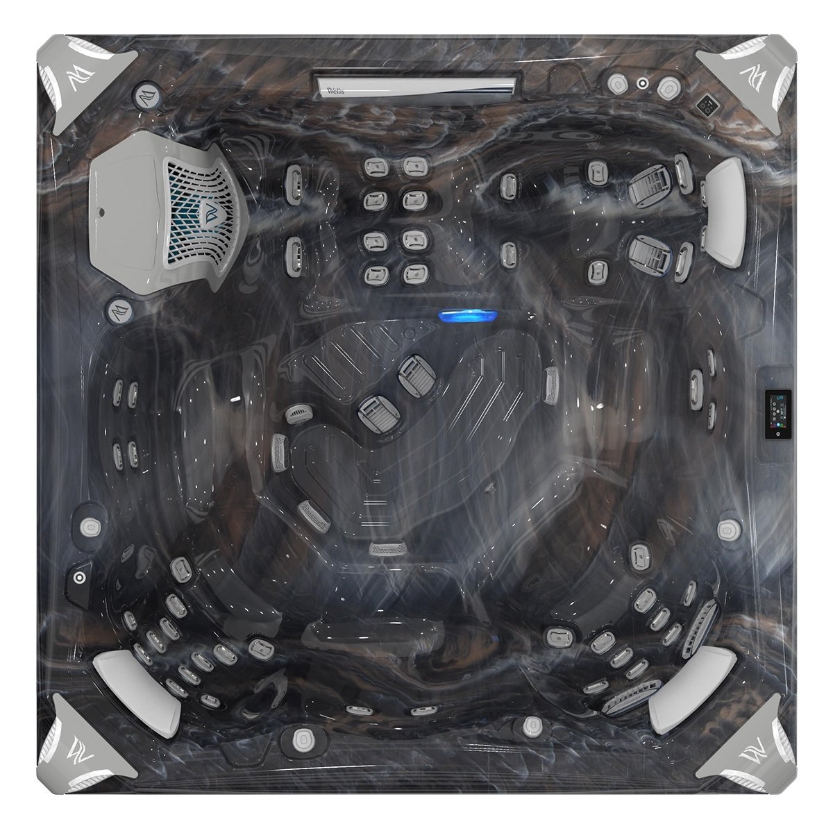 Az új fúvókák a PeakLife Premium masszázsmedencékben háttérvilágításal rendelkeznek, ami egyedülálló módon csak a Wellis fürdőkben található meg. A fúvókák széle is világít, így lenyűgöző látványt nyújt.